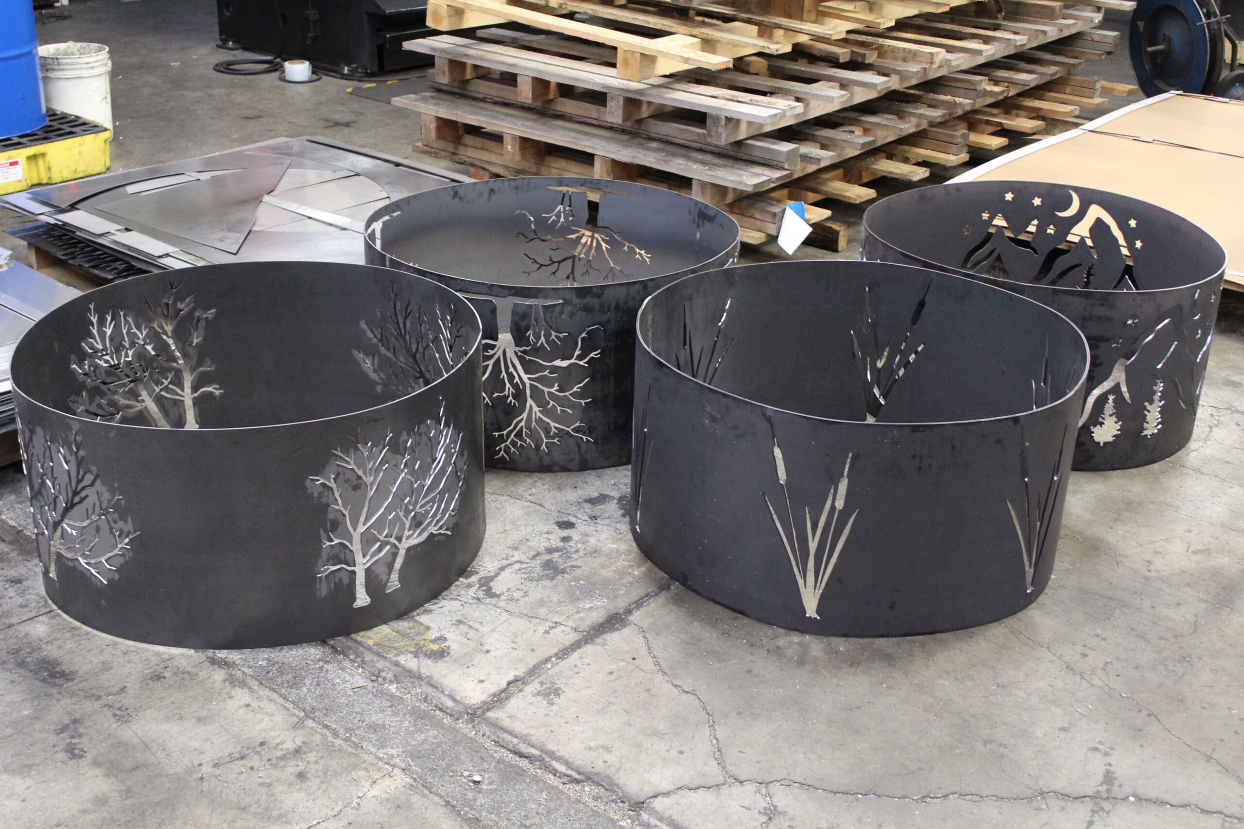 The customer requested four custom-designed firepits, each measuring 30 inches in diameter and 18 inches in height, made from 10-gauge carbon steel. The customer chose the designs of each firepit based on the images we had on file. In fact, our catalog of artwork helps clients like this put together unique designs that perfectly fit their styles.