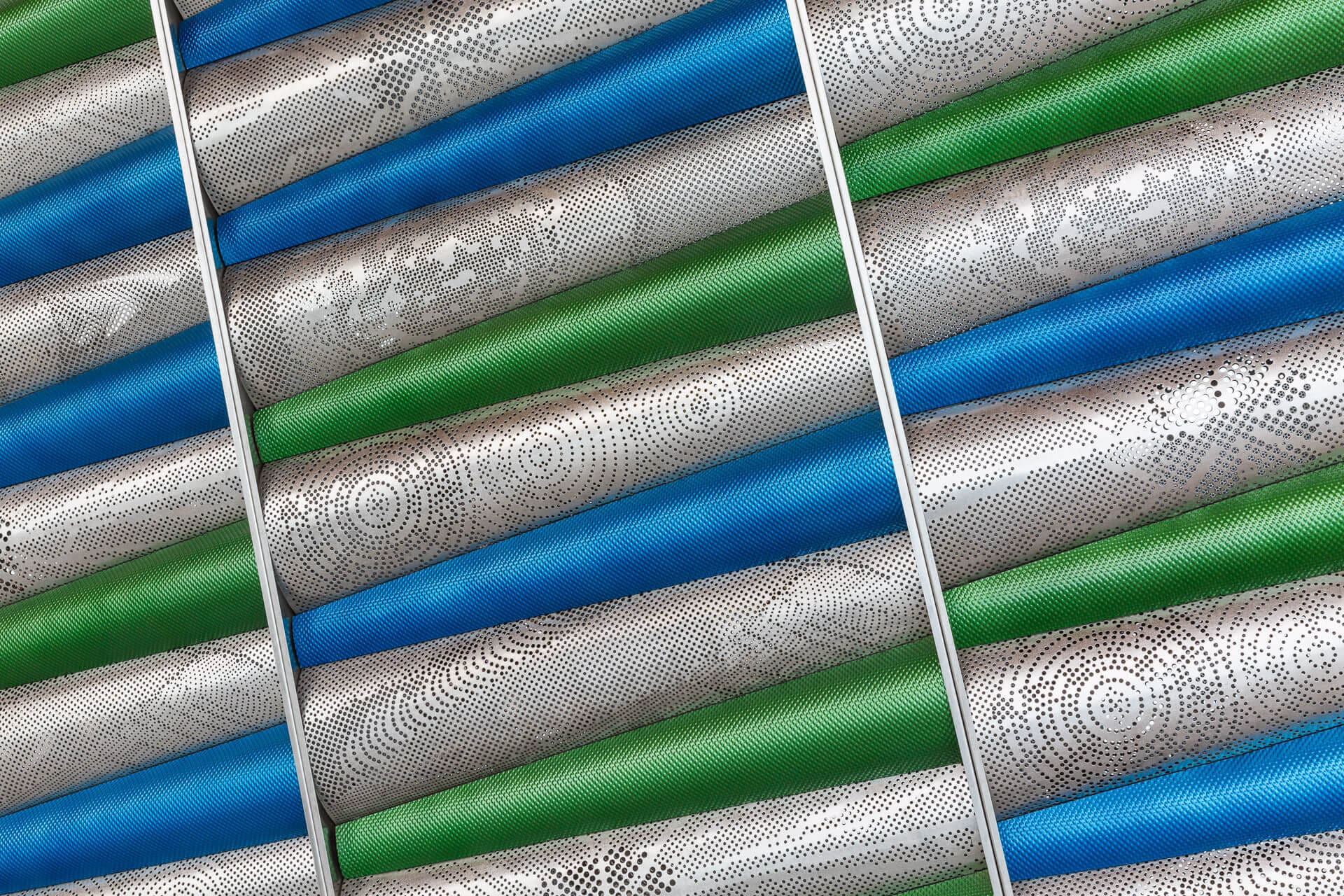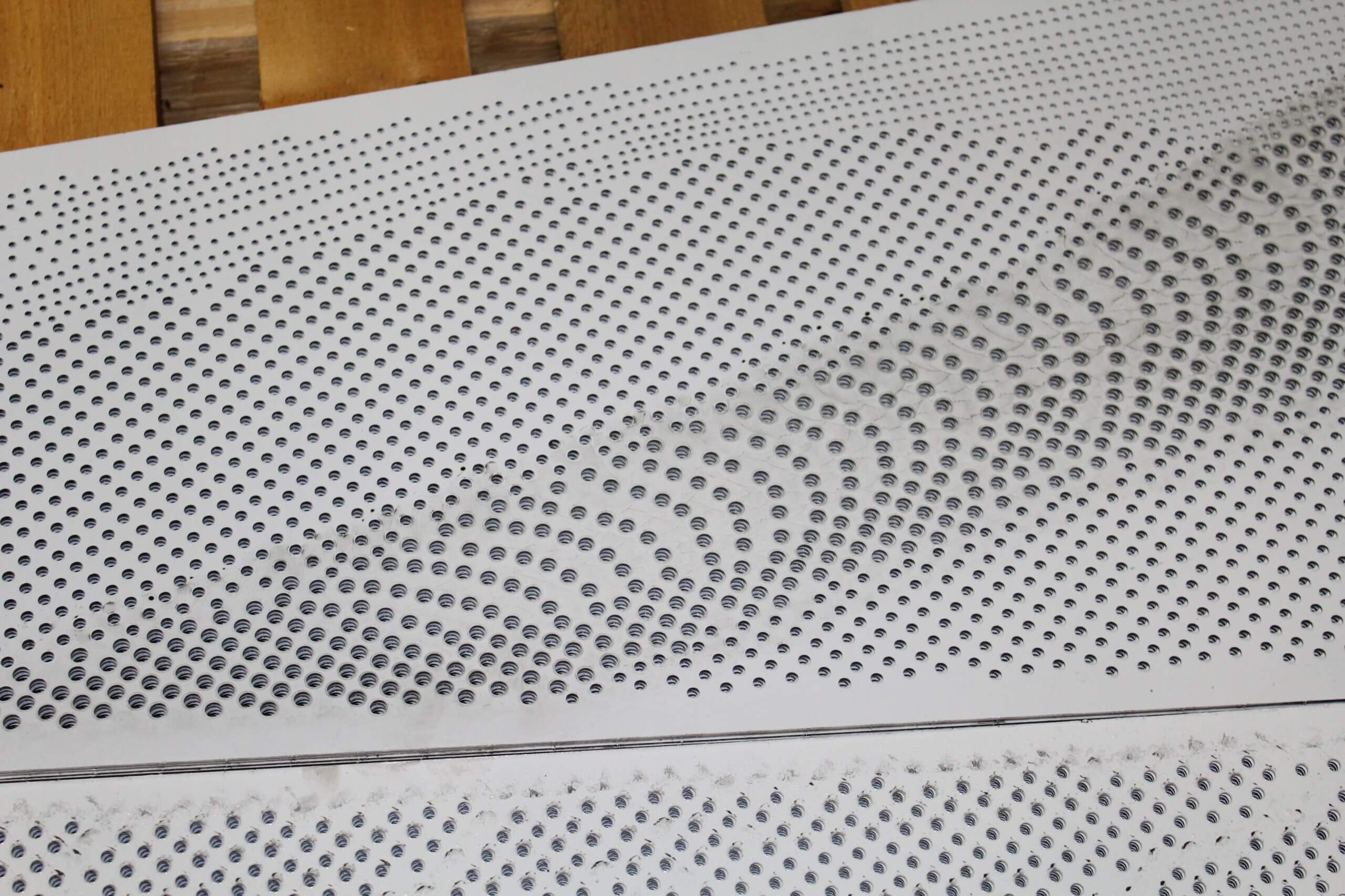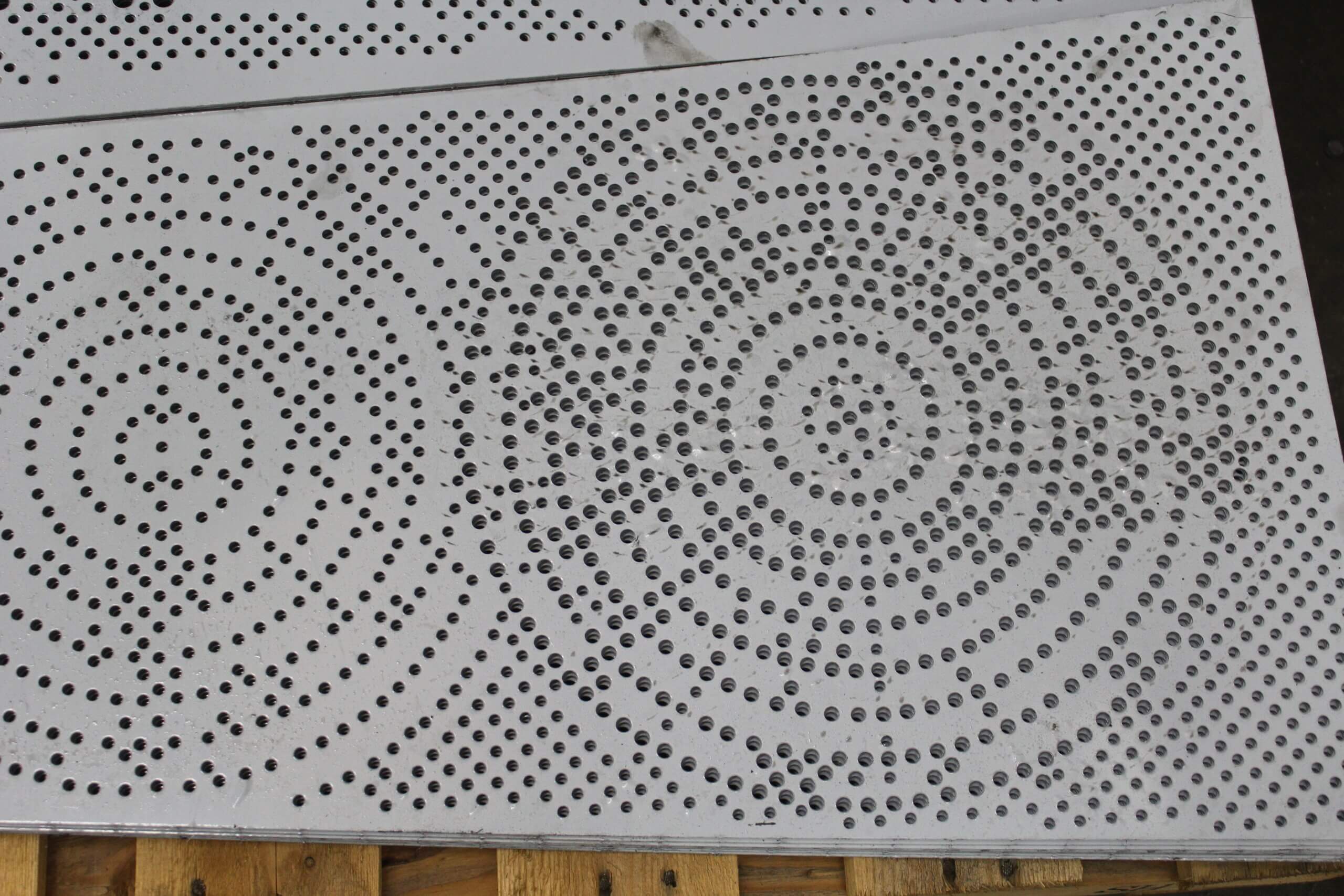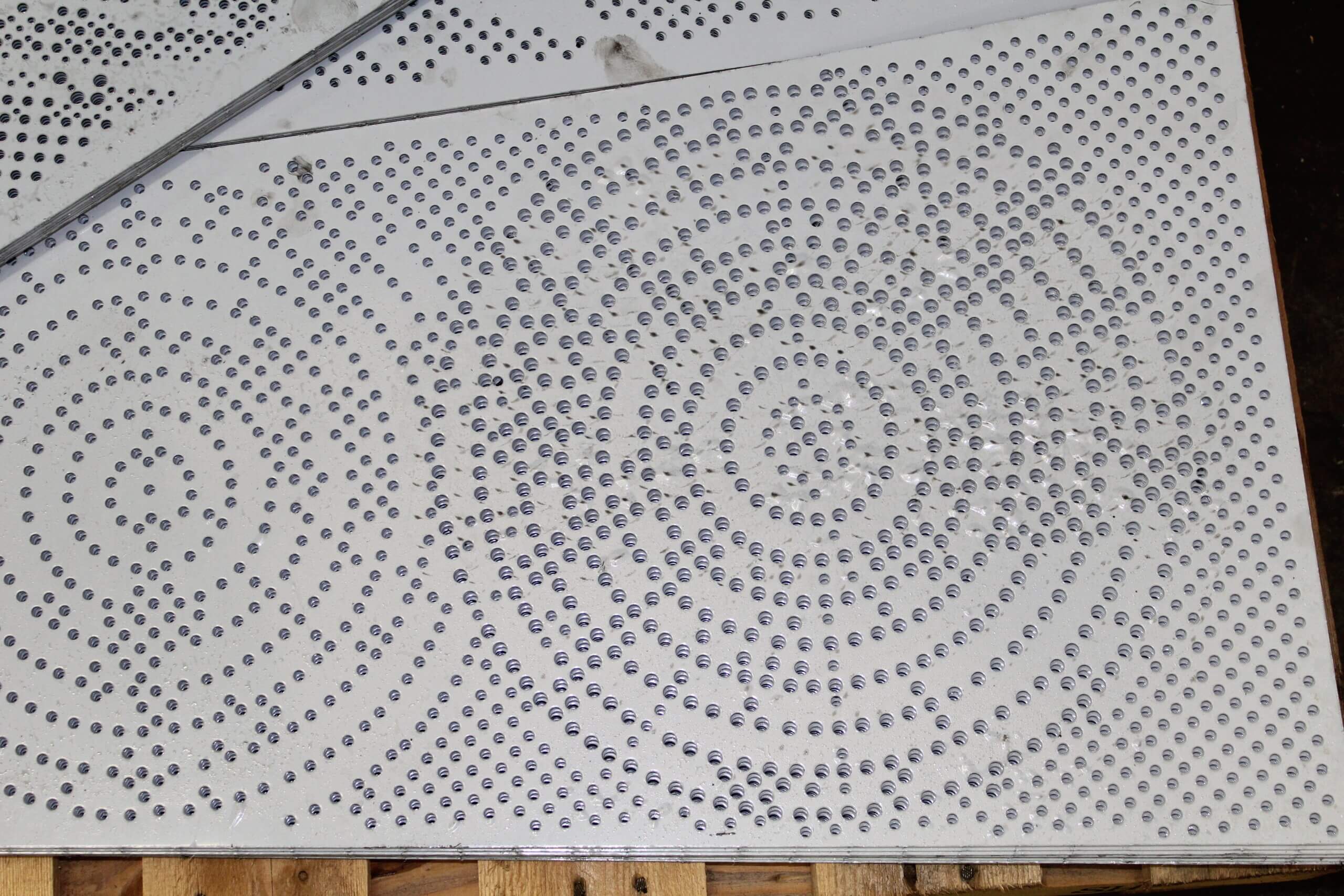 Roy Manufacturing used the Amada Coma 588 to punch multiple-size round holes with different centers in 16 GA SS 304-2B material to create four unique patterns for the wall pieces. The work was installed by Jim Schmidt, Art and Design Works, LLC (jimartanddesign@gmail.com).