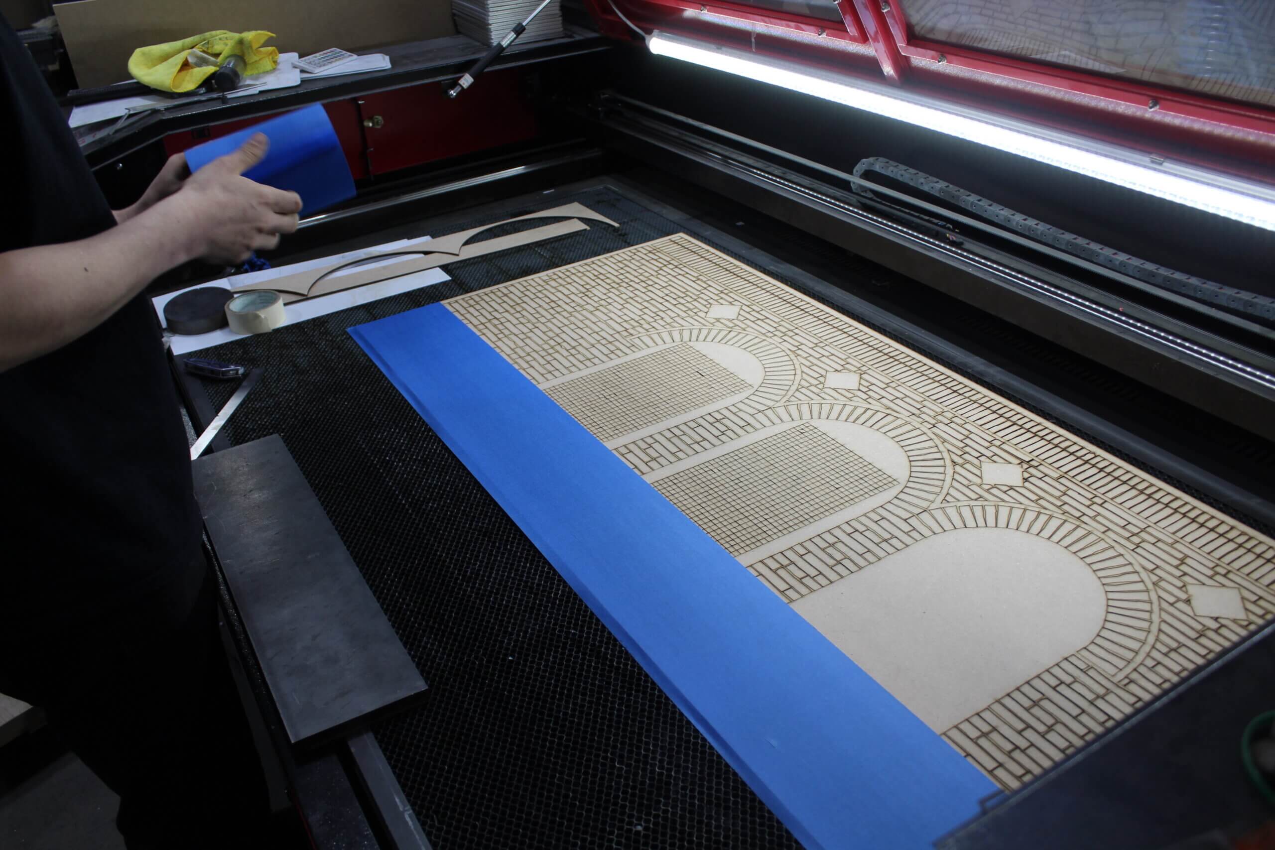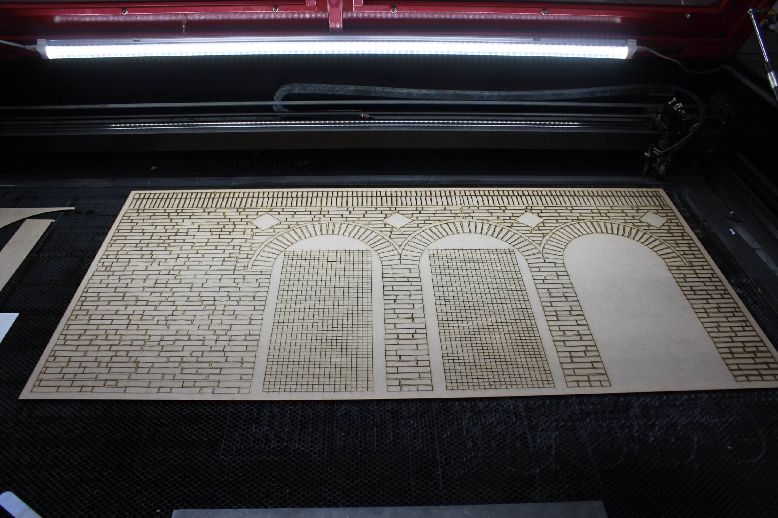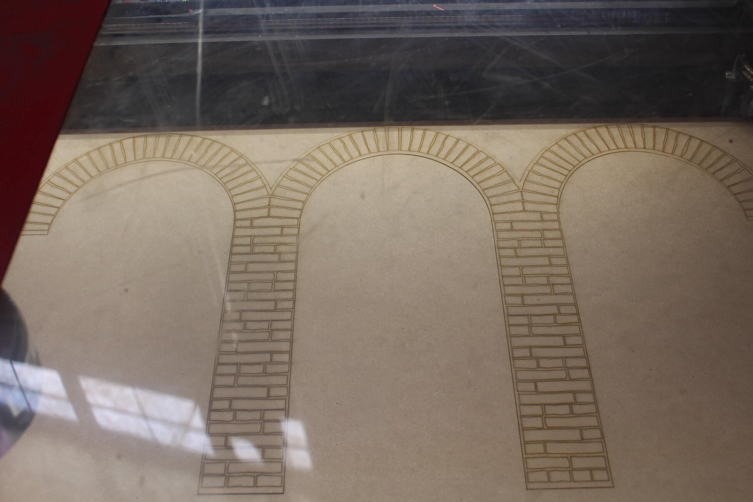 Carey’s project showcases the limitless potential of laser-cutting technology. The project was crafted from 0.125″ Medium-Density Fibreboard (MDF), a material known for its versatility and durability. The backdrop was meticulously cut out, featuring etched lines for brick placement, measuring 46.01″ x 22.50″. An archway cutout, also etched lines for brick placement, added depth to the scene at 32.36″ x 17.58″. But the absolute marvel lies in the details – over 3100 individual bricks of varying sizes, each laser-cut to perfection. This level of detail is a testament to the capabilities of Profile Laser’s CM1690 Resail CO2 Engraving and Etching Lasers. These state-of-the-art machines allow precision cutting on various materials, including metal, wood, and plastic.
