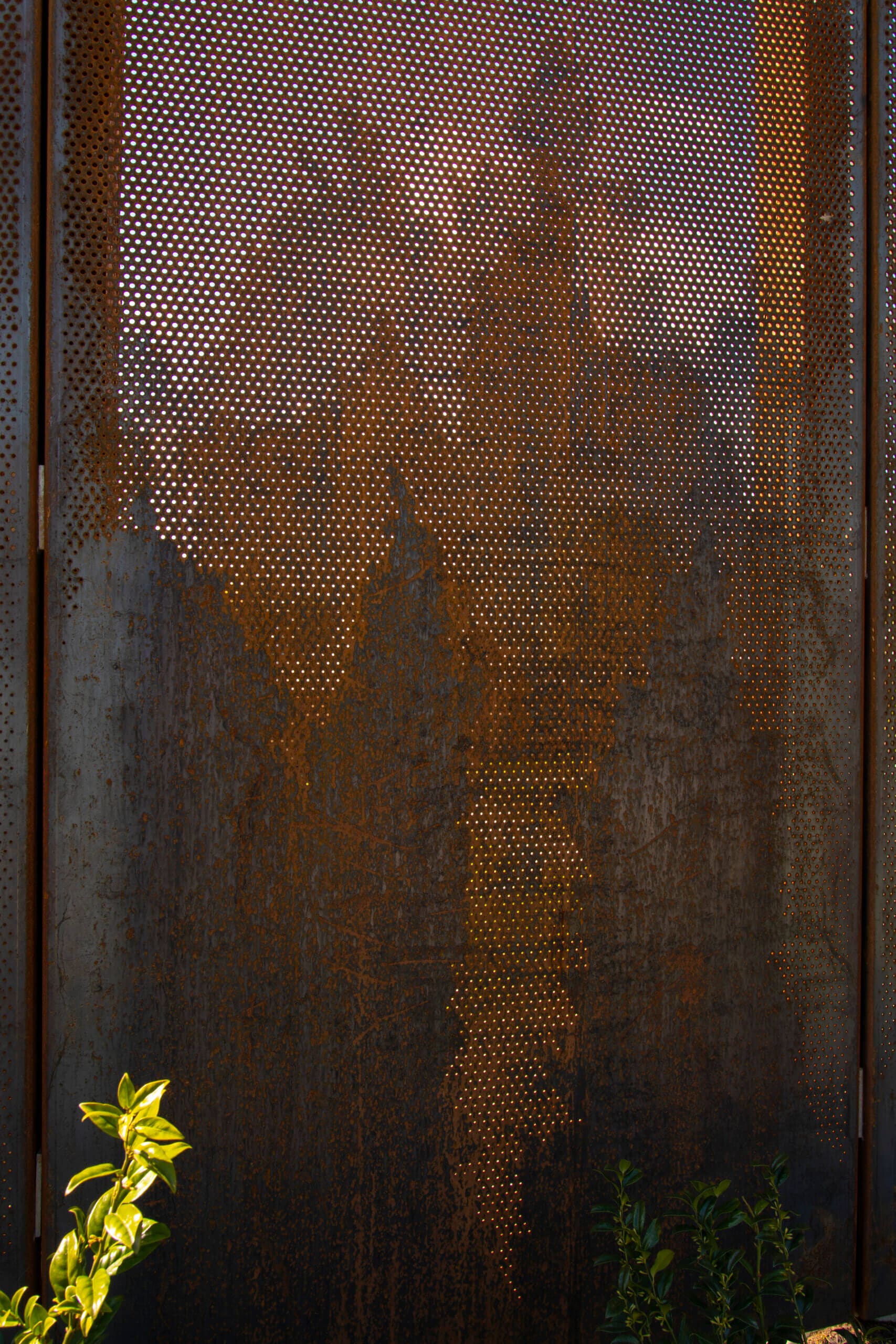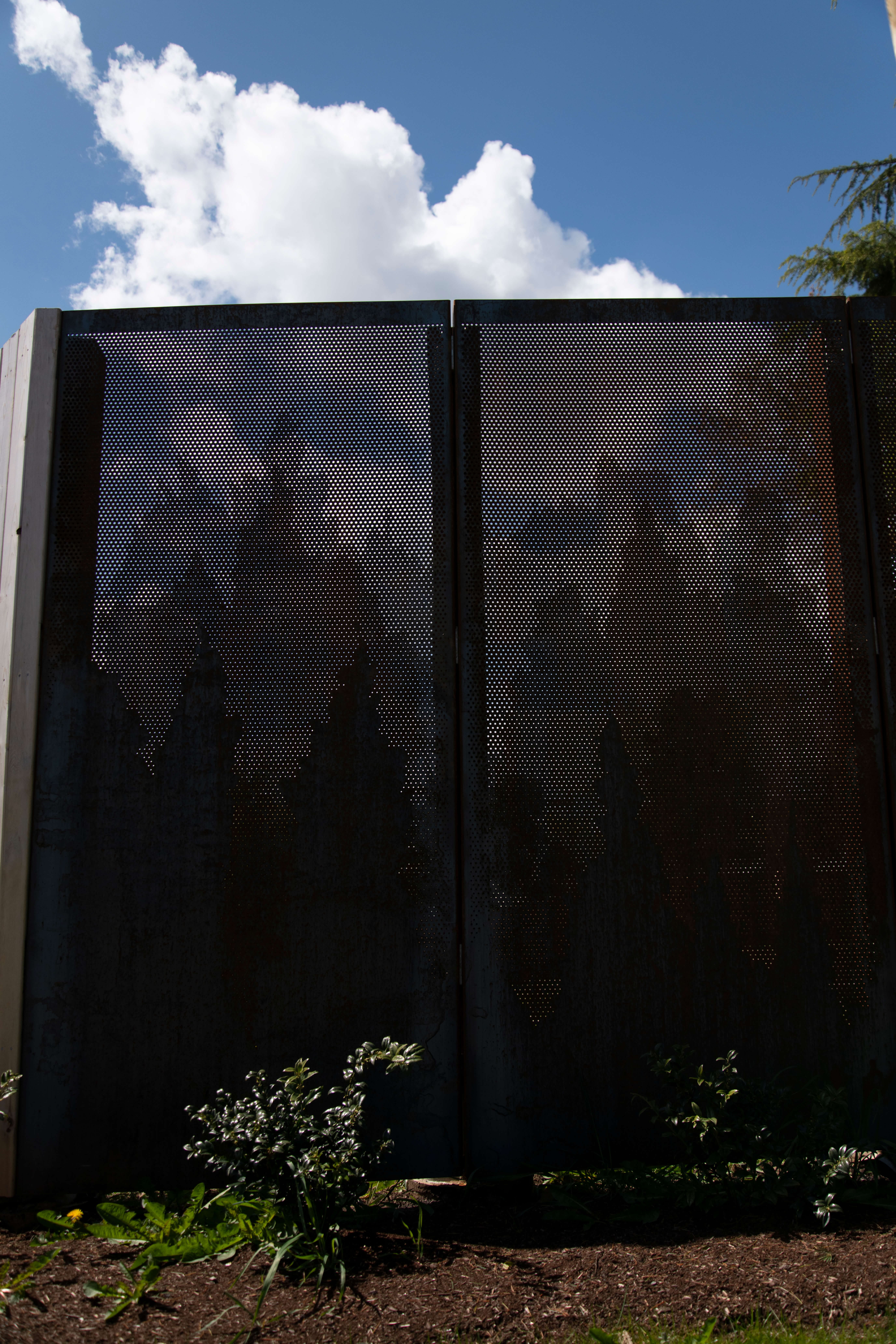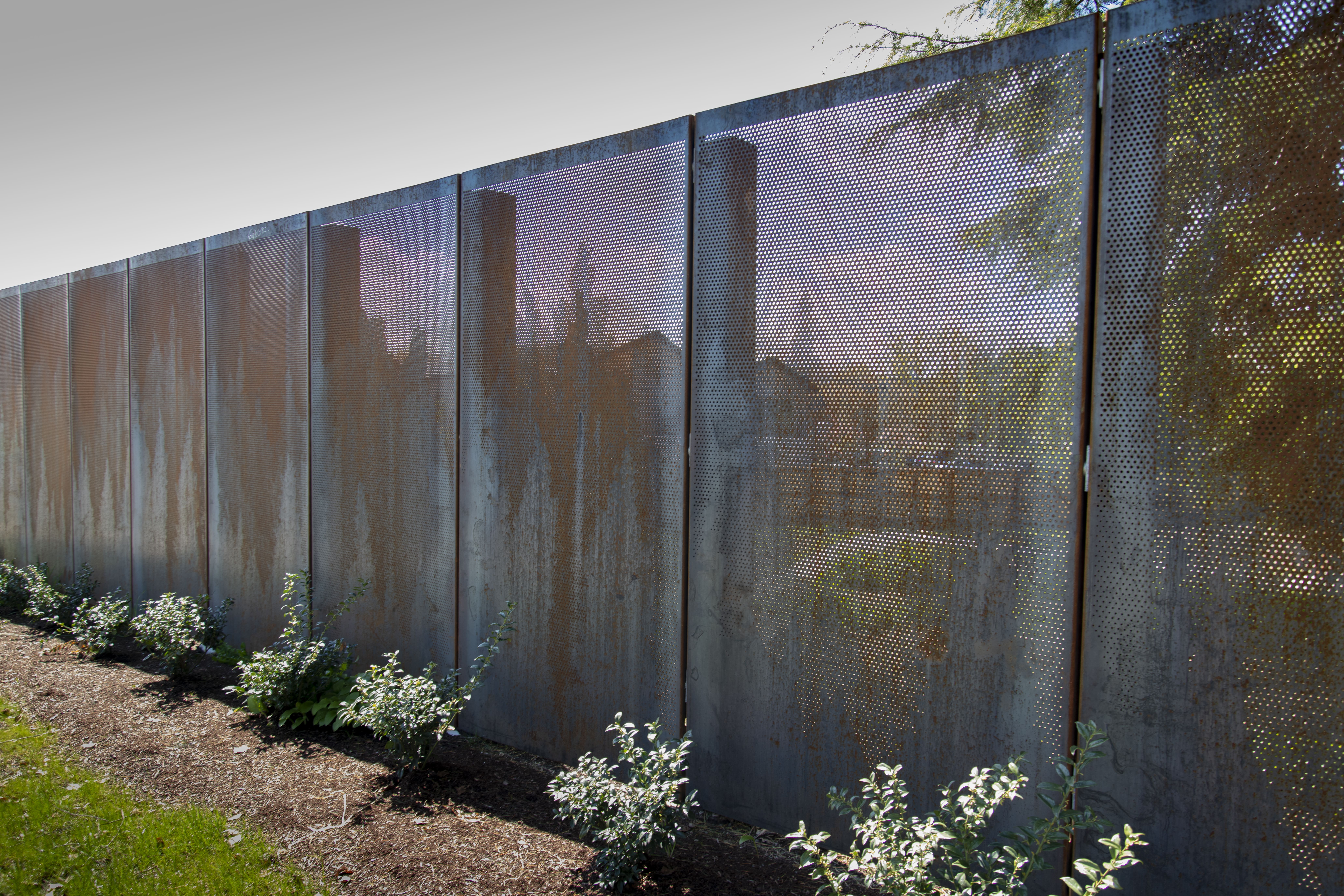 Designed to perfection, the custom perforated metal privacy panels consisted of four distinct designs featuring multiple round perforation diameters to create the captivating tree-line pattern. By meticulously incorporating 1/8 “, 3/16”, and 1/4” holes, Roy Manufacturing achieved a balance between privacy and aesthetics. A total of 69 panels were manufactured using 11 GA COR-TEN® sheets measuring 4’ x 8’. Each panel was carefully formed with flanges and mounting holes to facilitate easy installation.