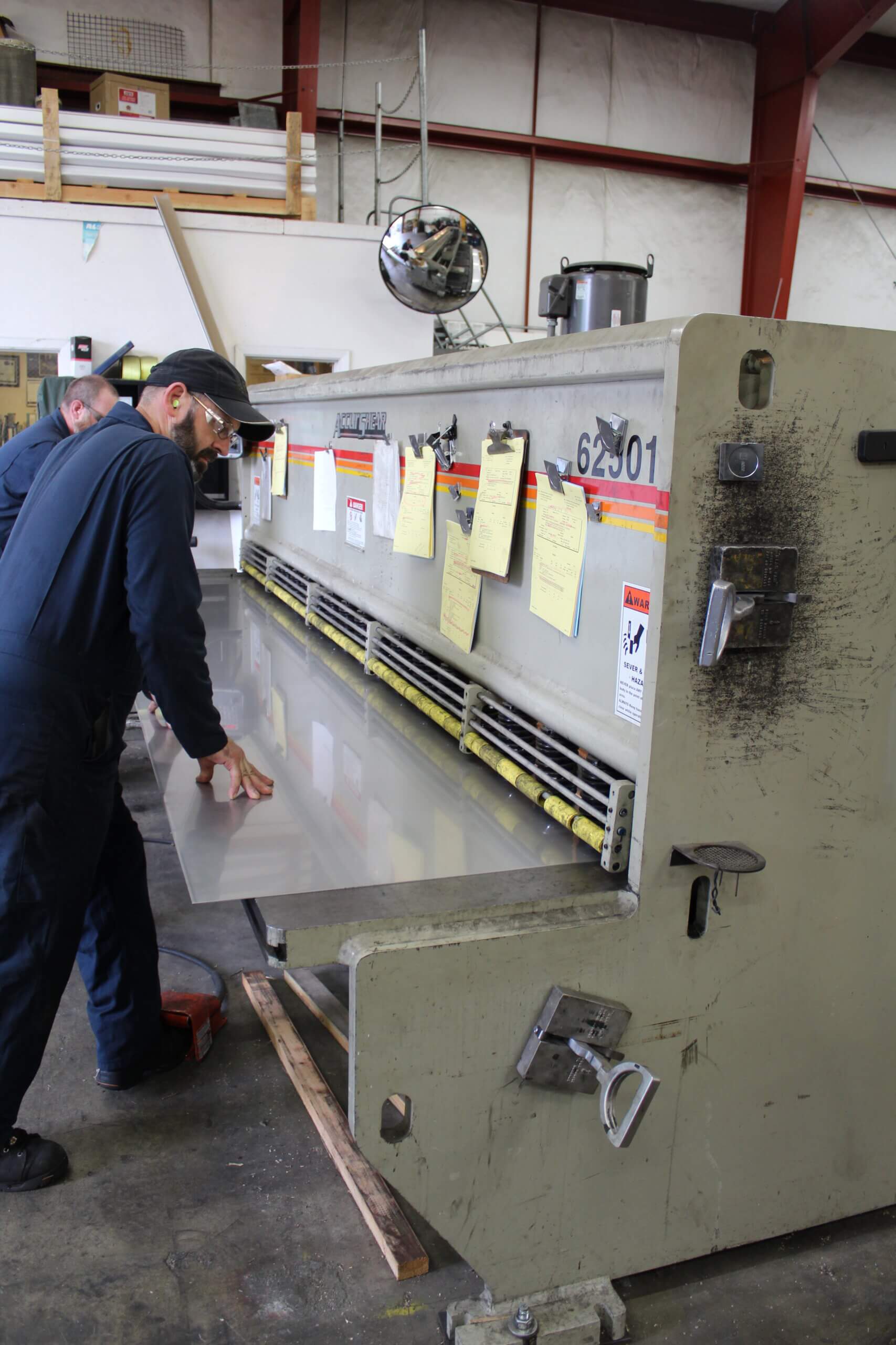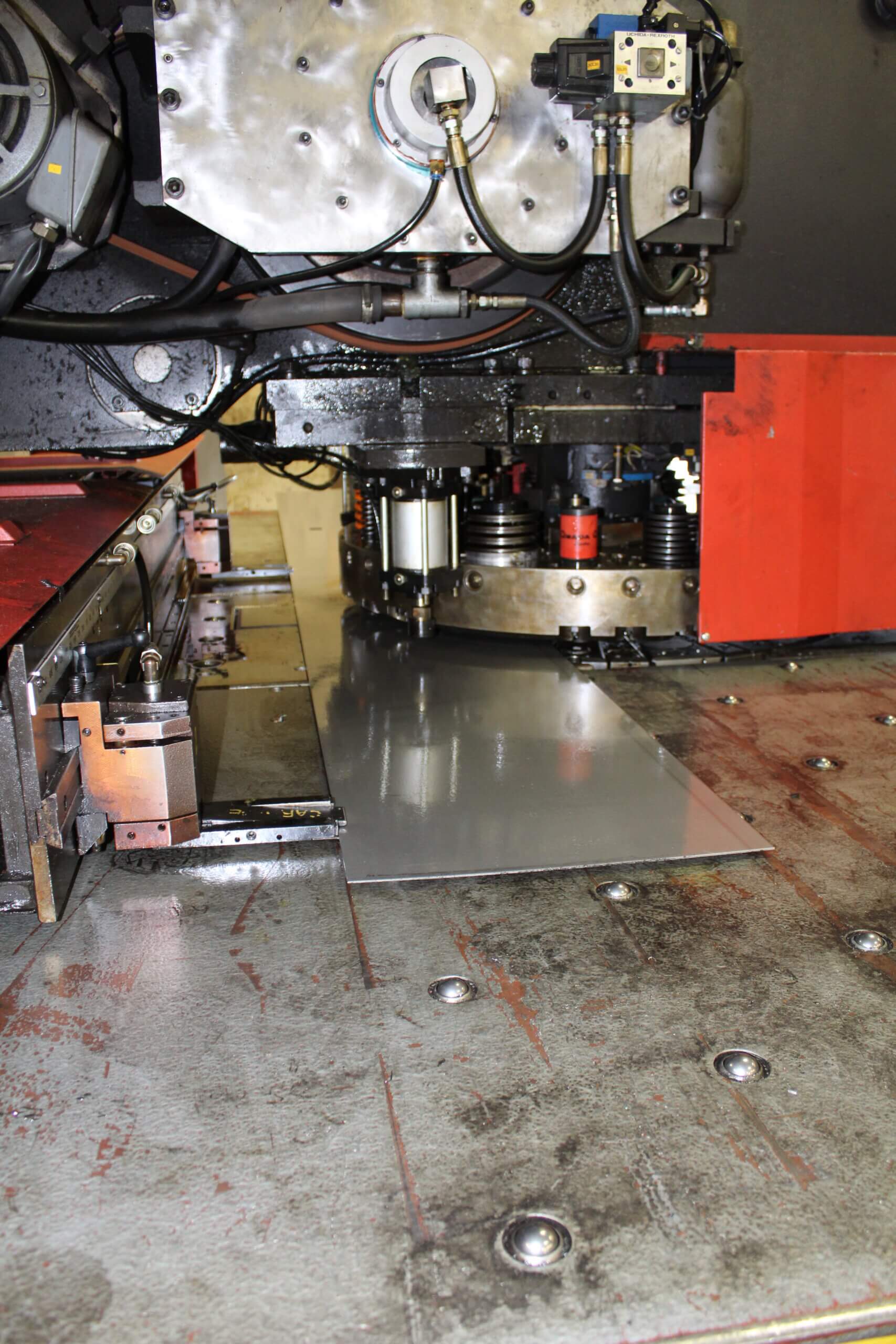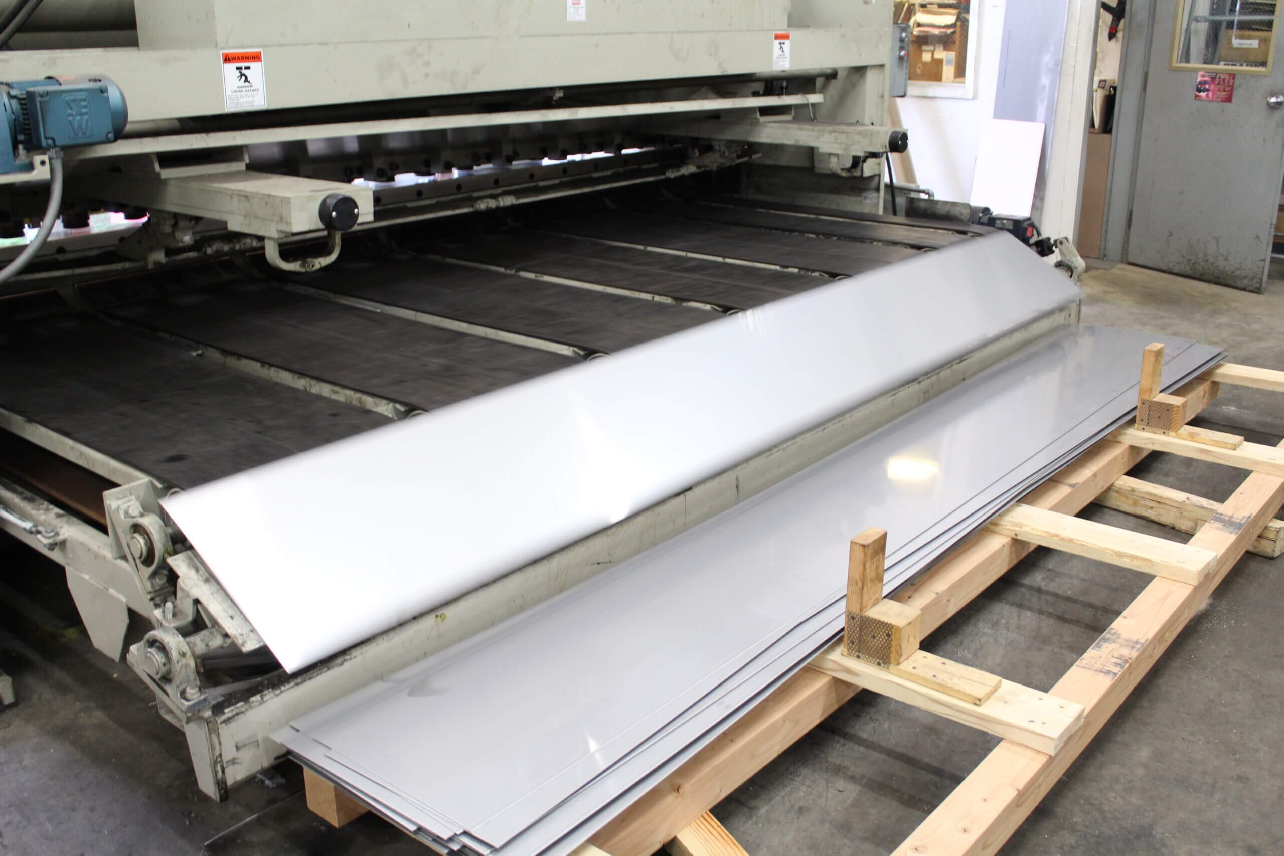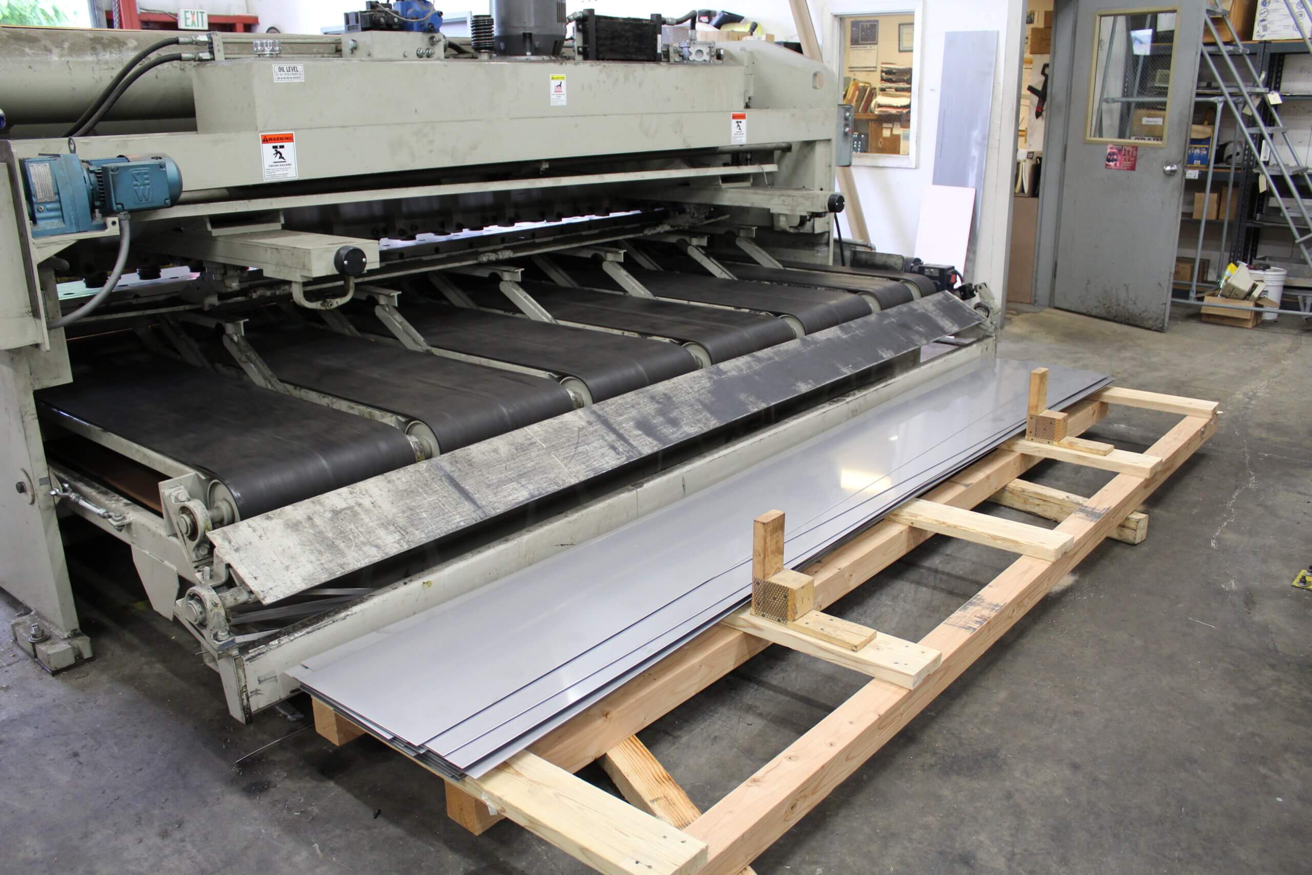 GEM Equipment frequently reorders punched metal sheets from Roy Manufacturing for installation in food processing equipment as part of an elevator that carries french fries up and out of a liquid bath. A total of 555 belts were produced from 14-gauge stainless steel: 300 sized 20.5 x 144” and 255 sized between 13 to 15 x 144”. Each sheet was punched with about 9000 obround/oblong holes sized 3/32 x 1/2”. A typical custom-punched metal industrial order is between 150 to 300 pieces, so we were excited to be selected for a project of this size!
