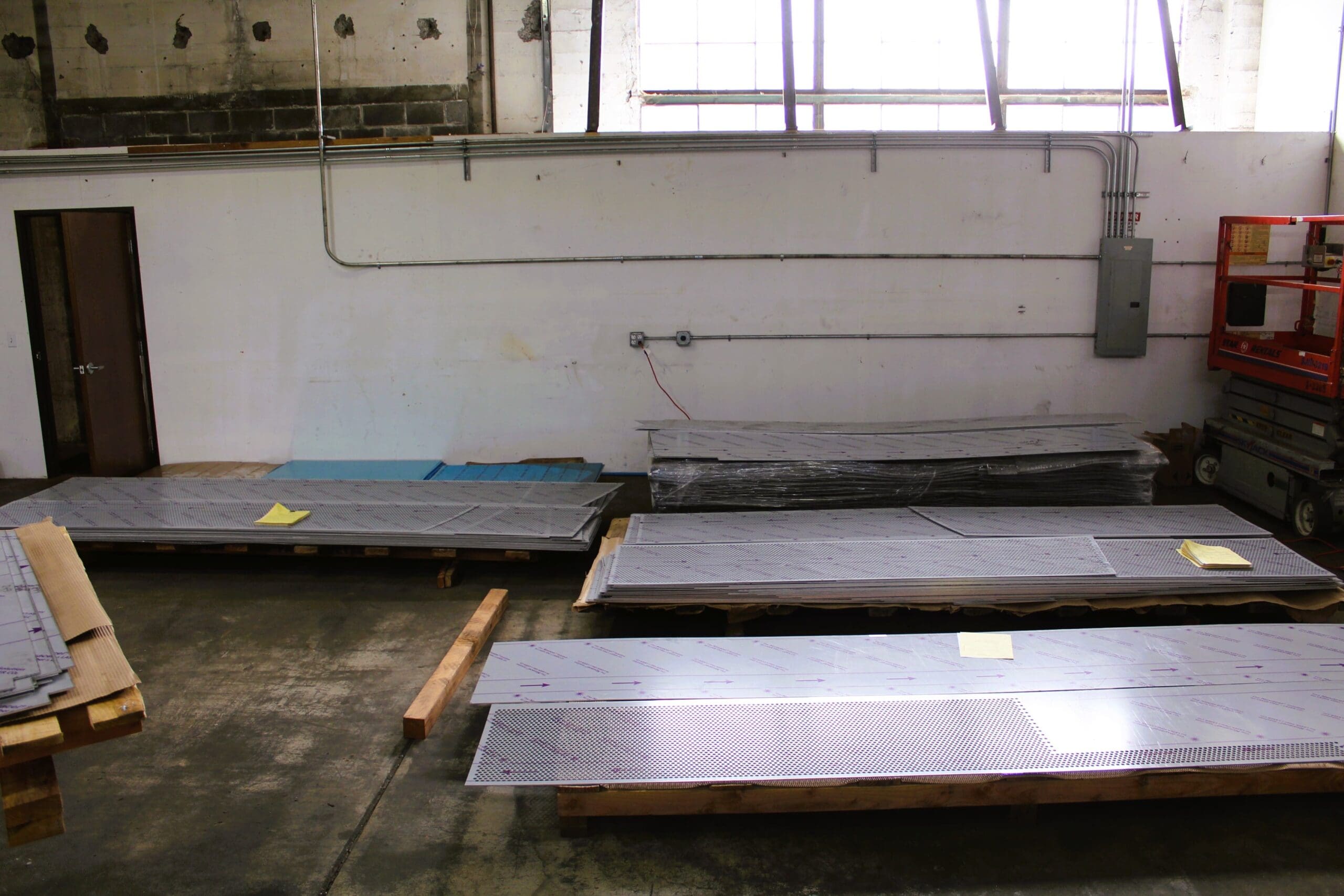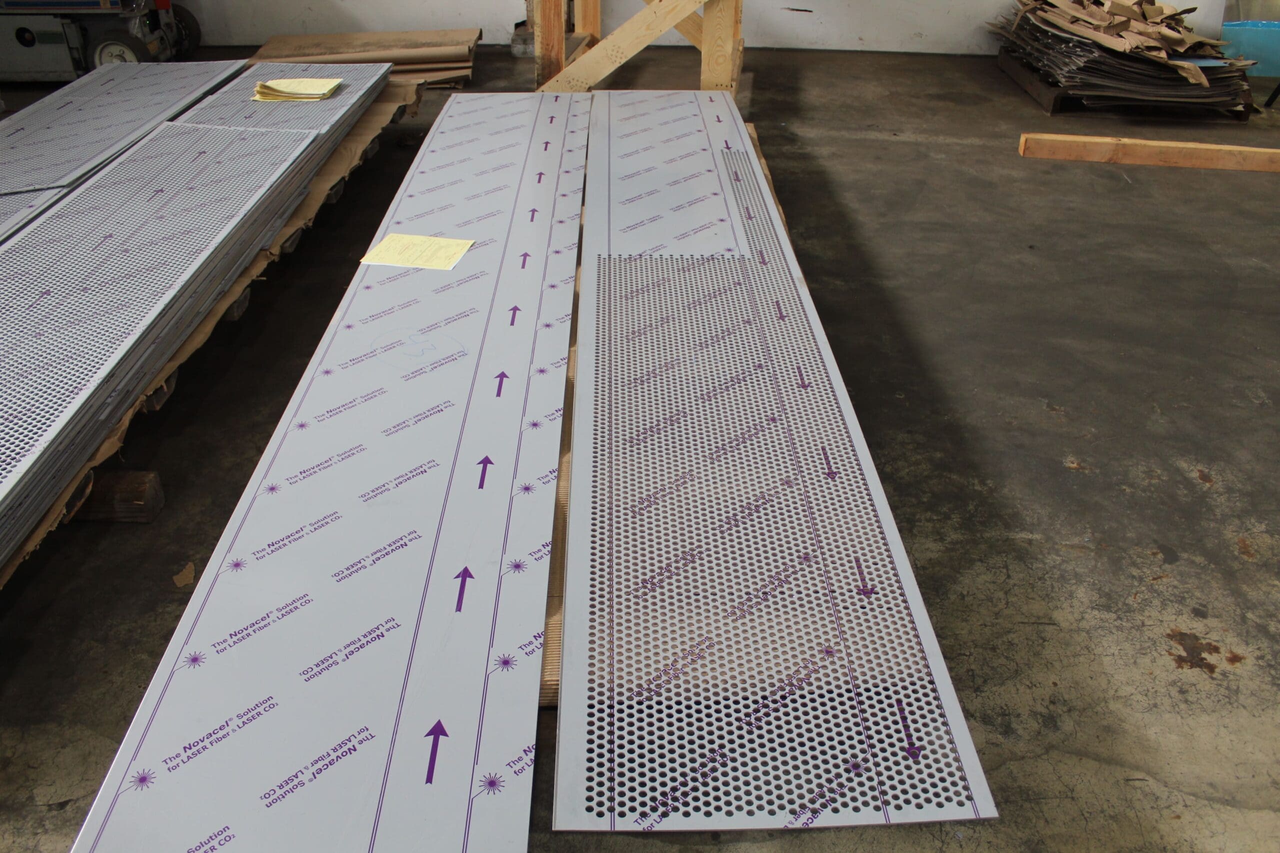 Roy Manufacturing’s contribution to this project involved crafting perforated panels using 0.125” 5052 Aluminum. Each panel was meticulously perforated with round holes, 1/2″ centers on 11/16″ staggered arrangements, delivering both functionality and aesthetic appeal. These panels varied in width from 24” to 50” and in length from 96” to 155”, serving as decorative elements within the station’s architecture.