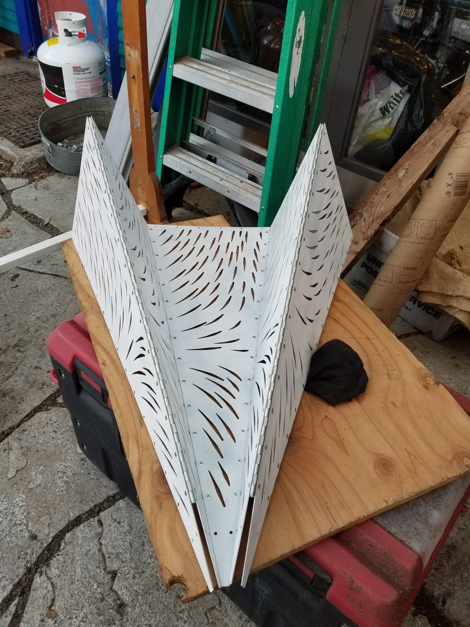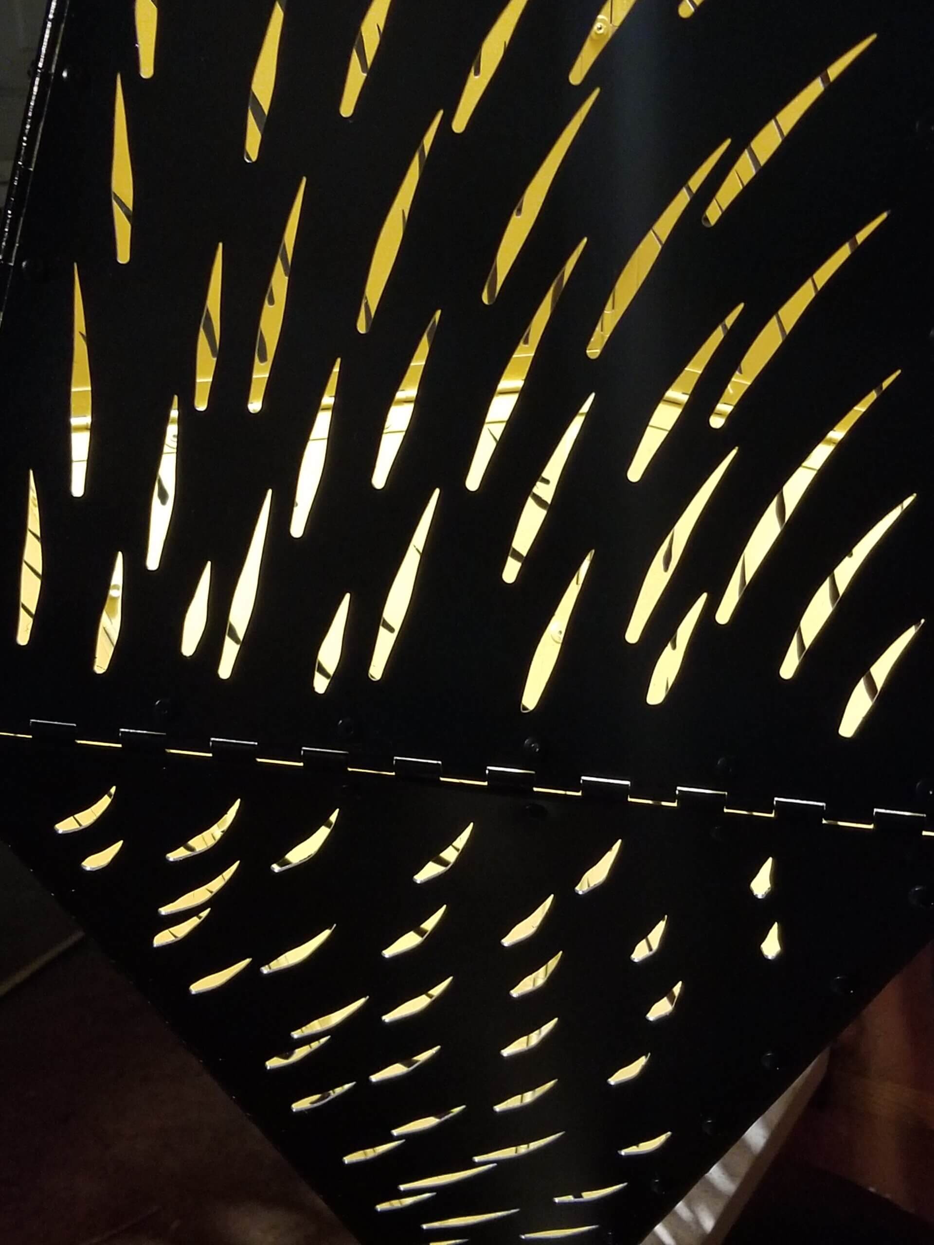 With the design concept in place, Jean Margaret Thomas turned to Profile Laser to transform her vision into reality. Utilizing their laser cutting and fabrication expertise, Profile Laser provided the necessary materials and precision cutting services for the Swirl Lanterns. Each lantern required ten metal triangle shapes with a continuous vector pattern meticulously cut from 18-gauge Cold Rolled Steel (CRS). Profile Laser’s cutting precision ensured that every detail of the design was accurately reproduced, preserving the intended aesthetic and functionality of the lanterns.